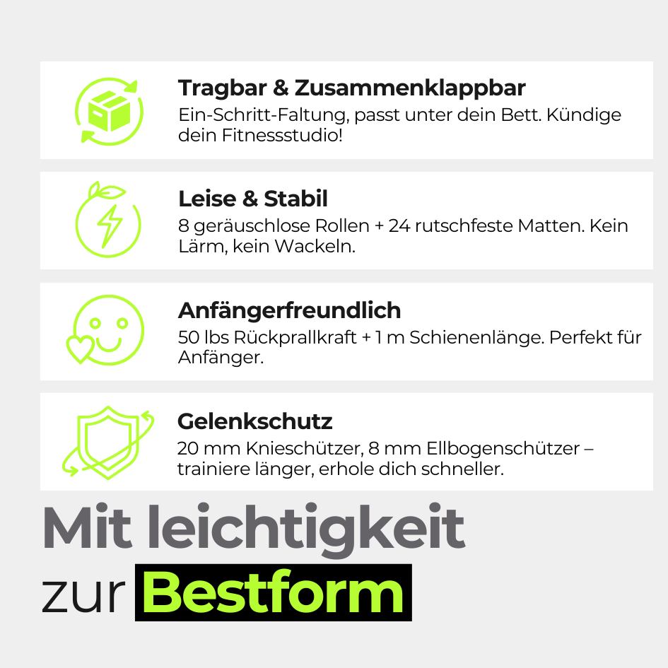 Ich kenne das Gefühl: Fitnessstudio-Abos sind teuer und oft fehlt mir einfach die Zeit, dorthin zu gehen. Vielleicht geht es dir genauso – du hast wenig Platz zu Hause und suchst nach einer praktischen Lösung, um trotzdem effektiv zu trainieren. Viele Fitnessgeräte sind groß und unhandlich, sodass sie mehr Platz wegnehmen als Nutzen bringen. Ich wollte eine Lösung, die mir hilft, fit zu bleiben, ohne das Haus zu verlassen und ohne viel Platz zu verschwenden.